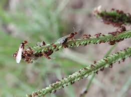 The gall aphid Pemphigus_spyrothecae secretes honeydew. Soldier aphids can remove this waste from their galls because they also excrete a powdery hydrophobic wax that coats the honeydew and encapsulates the sticky droplet of liquid. Soldier aphids can then push or roll the resulting object towards the exit of their gall. This is an example of a liquid marble.